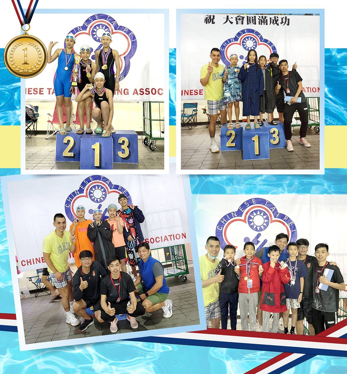 相信在老師的陪同下鼓勵孩子盡力的完成賽事,既便沒有拿到名次,我們的學員也獲得寶貴的游泳比賽經驗也值得回憶,每當老師們看到許多孩子在每一次的進步也都能受到喜悅與感動,同時也感受到家長們感謝鼓勵的回饋,感謝孩童家長一起參與並支持孩子們泳往直前,這也讓我們更有動力持續陪伴我們的學員成長及協助游泳技能的進步。