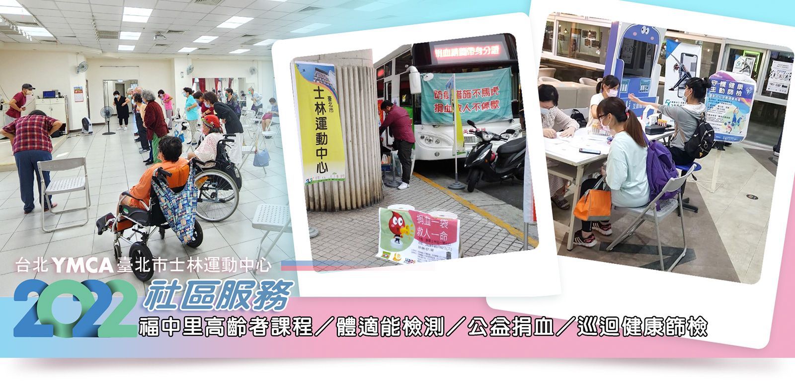 本會承辦政府委託營運的「臺北市士林運動中心」為促進市民健康,於2022年9月至12月期間進行多項社區服務,包含社區體適能檢測、至福中里提供高齡者健康促進課程、公益捐血活動及巡迴健康篩檢等。