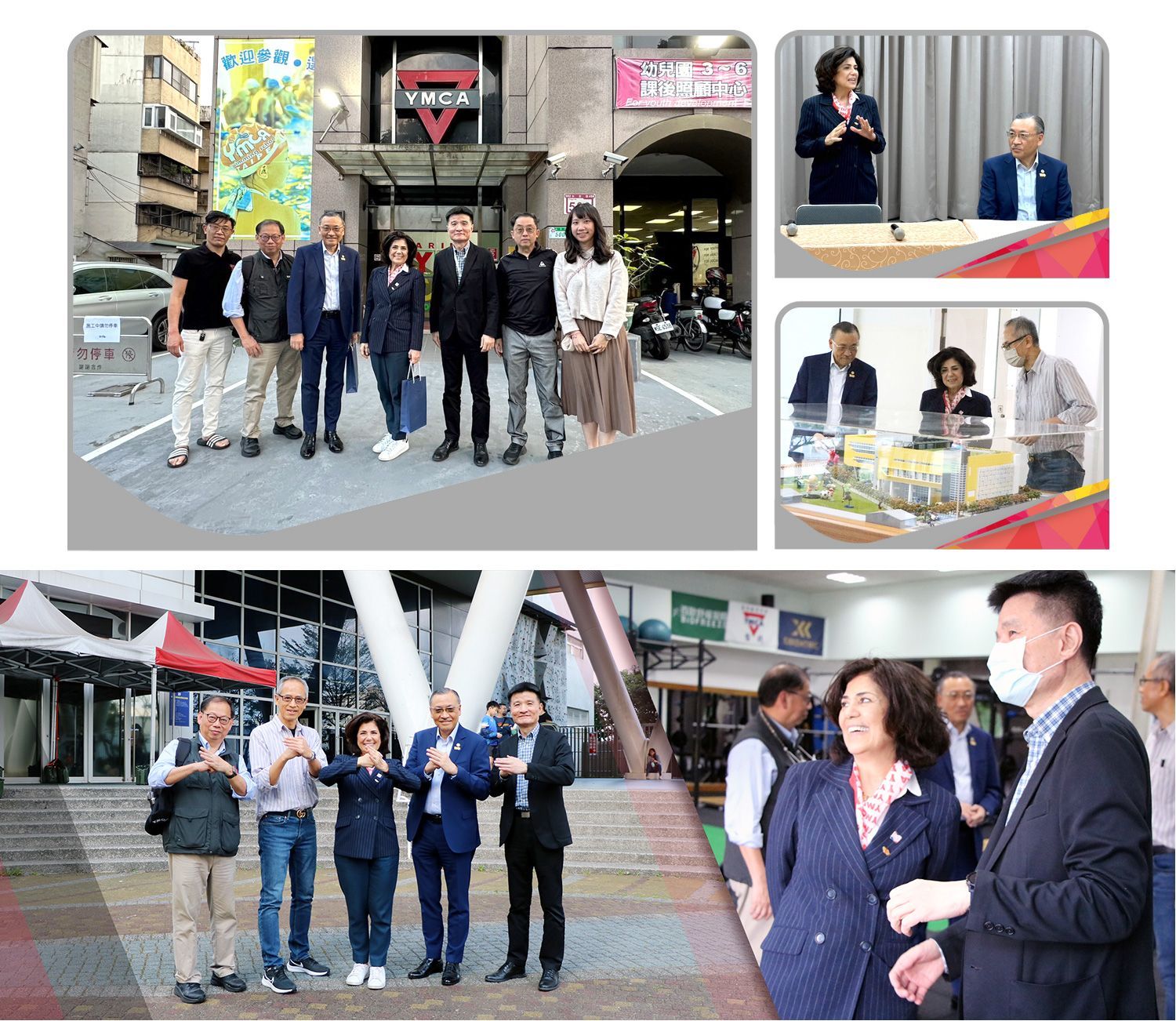新任YMCA世界協會會長Ms. Soheila Hayek和副會長Mr. Ronald Yam受國際聯青社邀請,來台灣參加3月10-12日在台北舉行之國際聯青社百年慶典。會長和副會長希望此行能有機會和台灣YMCA的理監事見面和交流,因此台灣YMCA全國協會特別安排於3月11日中午在本會城中會館進行交流會。會中除了透過影片介紹台灣各地YMCA之事工活動,讓新任會長更多了解台灣YMCA外,也和各地YMCA理事長和總幹事有深入的交談。會後,本會也安排會長及副會長參訪本會永吉會館及泰山運動中心。此行讓會長及副會長對台灣及台北YMCA的事工有更多的認識,會長和副會長也對台灣YMCA全國協會和本會的接待表達謝意。