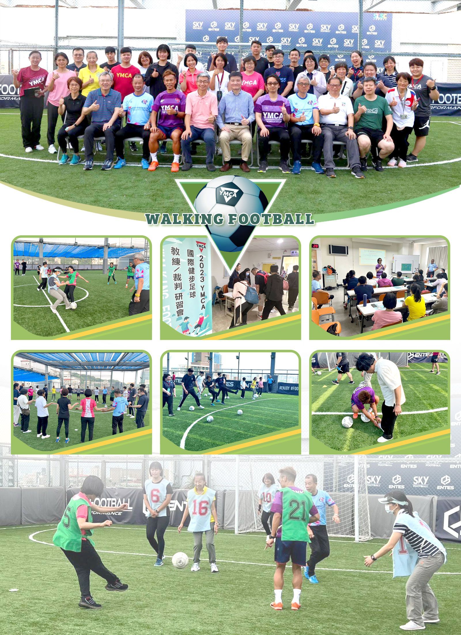 2023年5月22~25日由香港中華基督教青年會及本會共同主辦「YMCA國際健步足球-教練/裁判研習會」在台北市士林運動中心,感謝香港中青YMCA所選派之四位負責健步足球之專家和裁判擔任今年研習講師團隊親自指導健步足球,讓參與者展開體驗健步足球的基礎技巧及實戰練習,加上裁判的規則穿插指導,豐富了健步足球的研習學習過程,收穫良多。