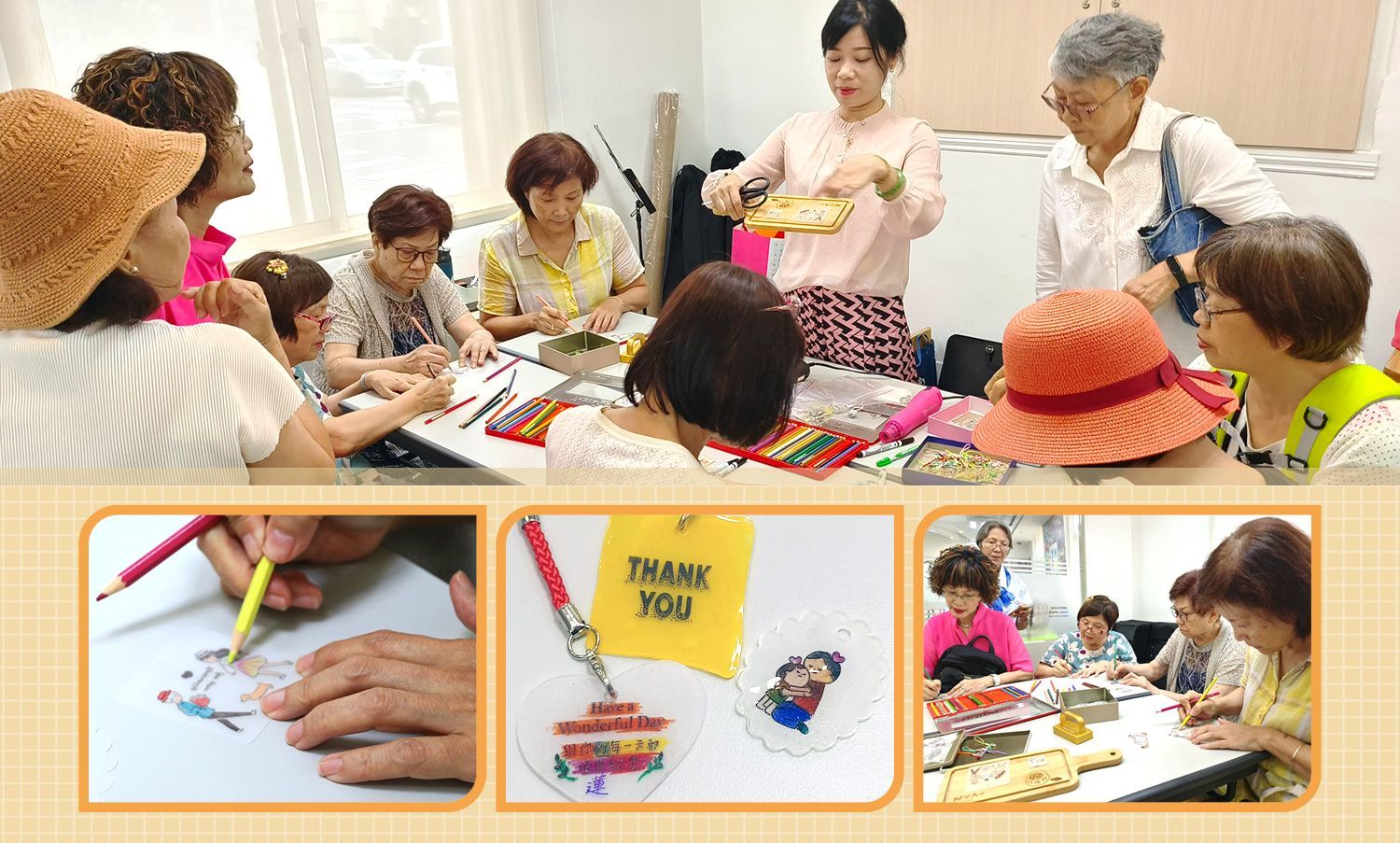 來到樂齡健康活力中心的學員,經過專業評估及體適能檢測,提供多元個別化的健康促進課程,包括木箱鼓敲唱、減壓肌力訓練、爵士舞、活力匹克球、手作繪本、水中體適能…等,透過動態及靜態不同的課程安排,學員們進行身體的活動及腦力運動的刺激,促進維持正常的生理機能,進而增進身心的健康及安定感。