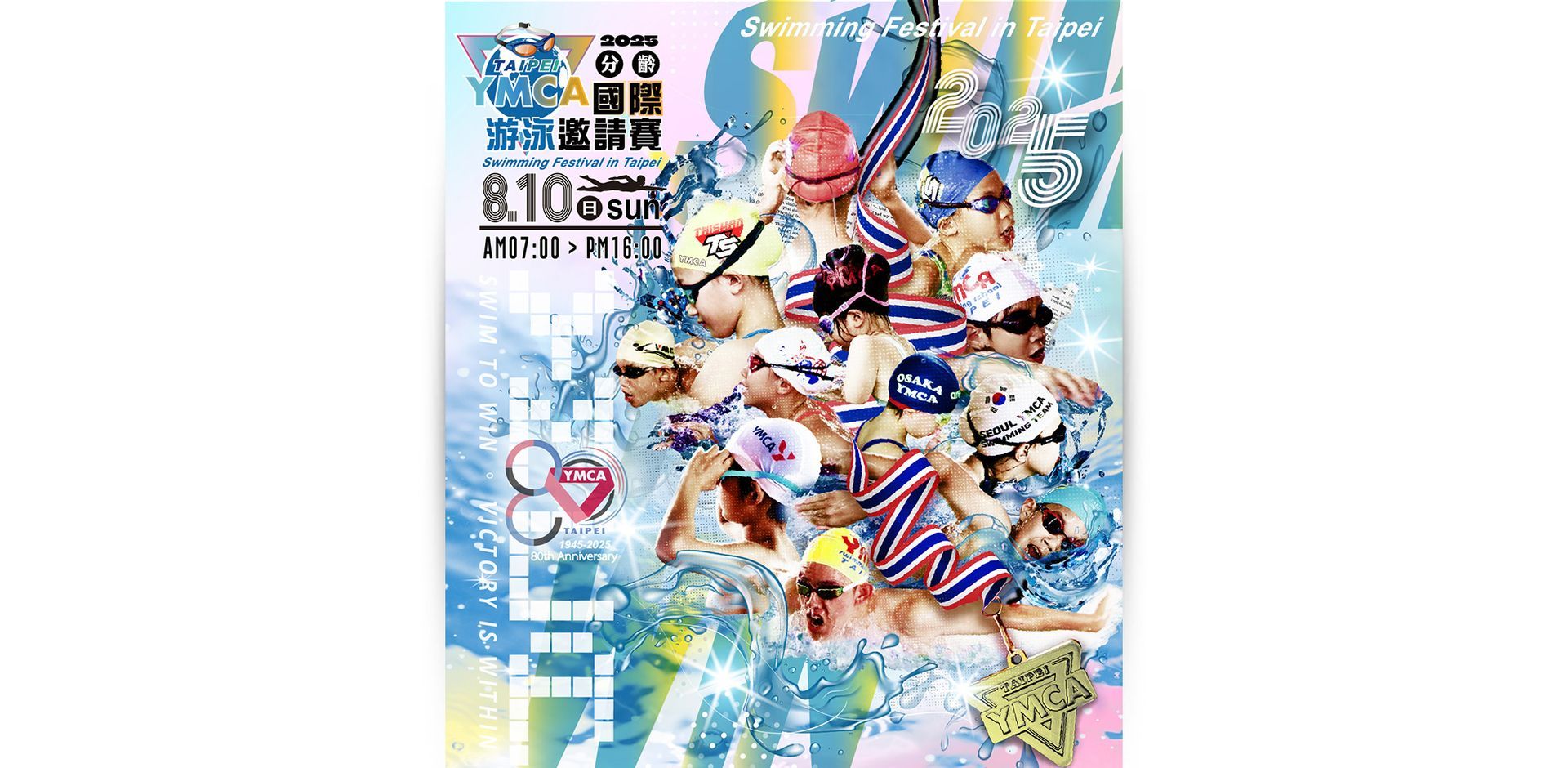 2025年台北YMCA於8月10日(週日)舉辦「YMCA國際游泳邀請賽」在泰山國民運動中心游泳池,讓來自不同地方YMCA游泳學校及在國外同在YMCA成長學習的游泳學員大家能齊聚一堂,選手們用汗水和笑容,點燃了現場的熱情,也為彼此留下了獨一無二的回憶。