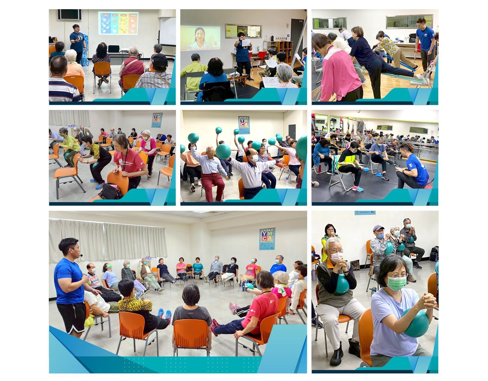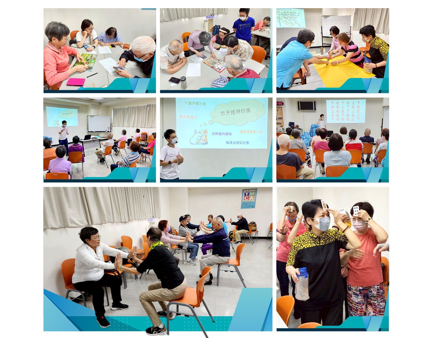 本會承辦政府委託營運的「臺北市士林運動中心」,2025年3月至6月期間為高齡者開設腰腿強健班、頭腦保健班與樂齡阻力課程,每位參加的高齡者每堂課都與同學互動的很開心,他們來到運動中心總是心情愉快,也認識新的朋友圈並期待秋季高齡者課程的到來。